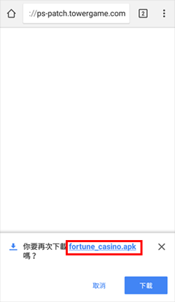 1.After Android scans the QR code, the following screen appears. Click the red box to confirm the download and installation of the website.