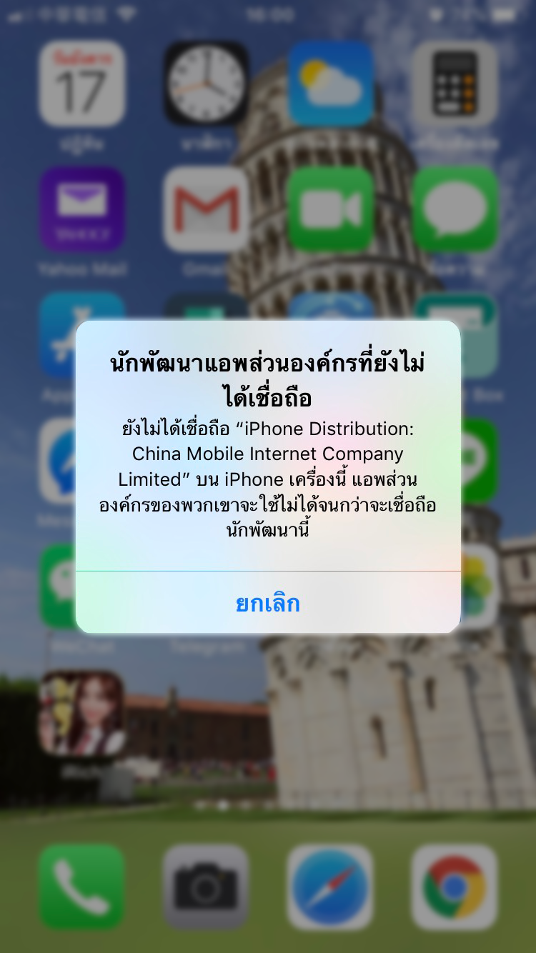 2.เมื่อเปิดAPPแล้ว 2. คลิกที่แอพ ระบบจะแสดงข้อความที่ไม่น่าเชื่อถือ กดยกเลิก